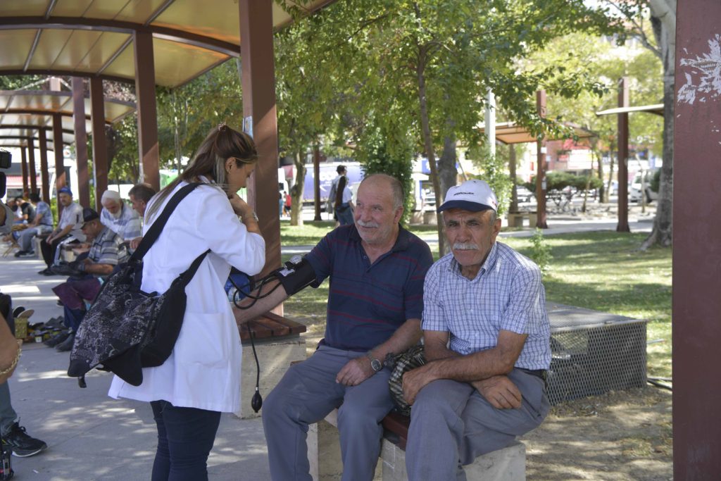 Düzenlenen etkinliğe sağlık çalışanları ve sosyal hizmet uzmanları katıldı. Emeklilerin sorunlarının dinlendiği etkinlikte, vatandaşların rutin sağlık kontrolleri yapıldı.